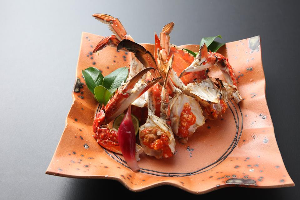 その後、内子がたくさん入ったワタリガニのメスを食べながら参加者同士で