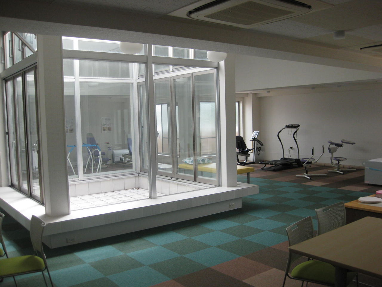 < ↑ 天窓から入り込む光が、ちょっと幻想的な雰囲気をかもしだしているリハビリ室です>