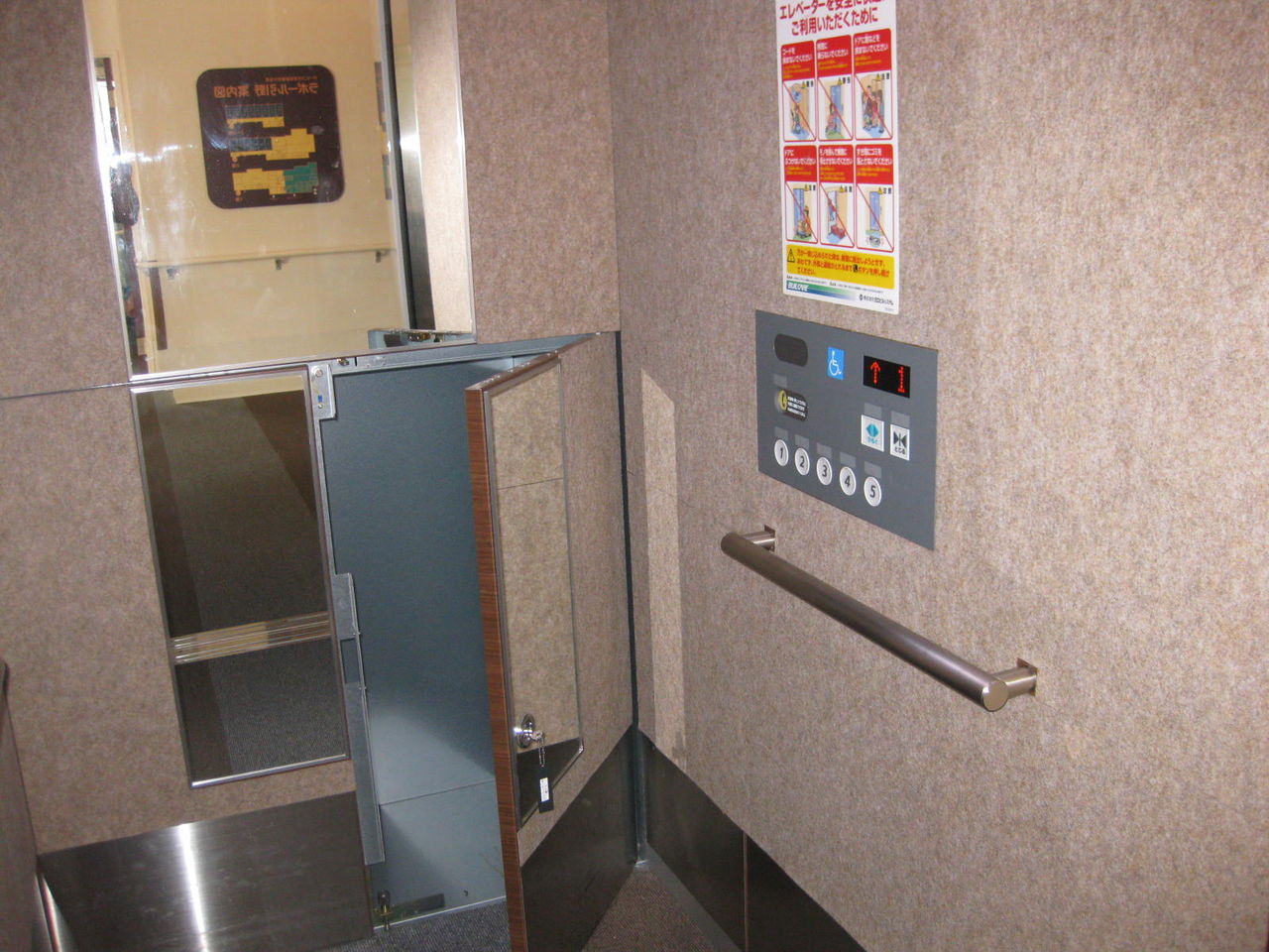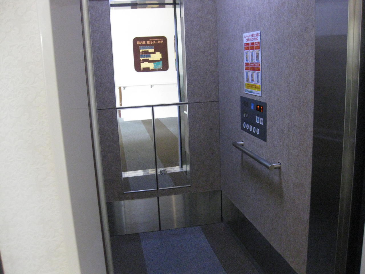 ↓ ラポール引野のエレベータです。奥にあるのはミラー(鏡)です。よくある普通のエレベータ内部です。