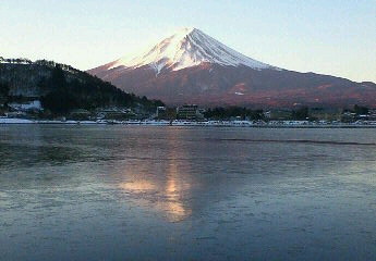 逆さ富士ですが、凍った湖面に映っているので、鏡富士と命名してみました。