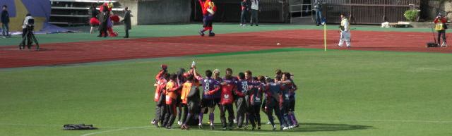 ハーフタイムに、虹のアーチが広がり縁起よろしいかと錯覚した