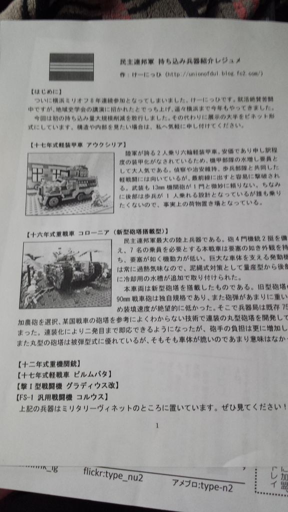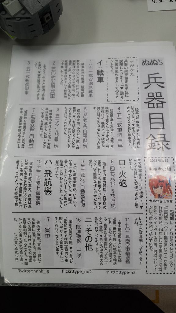 それとオフ会当日にも突っ込んだのですが、戦車の車体に作者名をスタンドするとは贅沢な使い方。各作品には作品名が書いてある用紙が置いてありました。ありがたい!
