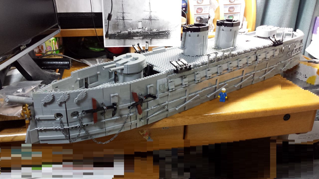 けーにっひさんの海兵ミニフィグをお借りして砲艦に命を注いでみました。この海兵ミニフィグと砲艦の雰囲気がマッチしております!