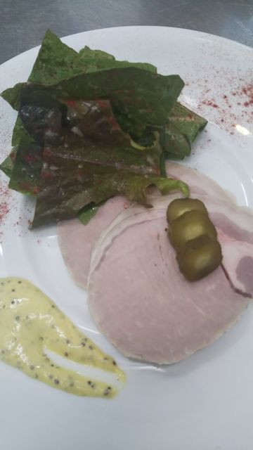 仙台自立の家のローメンレタスのサラダと自家製ロースハムの前菜