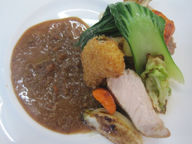 肉の料理は岩手県産の鶏もも肉。