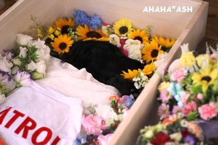 大きかったASHは、小さく小さく姿を変えてしまいましたが、沢山のきれいなお花たちに囲まれて、とても幸せそうです。