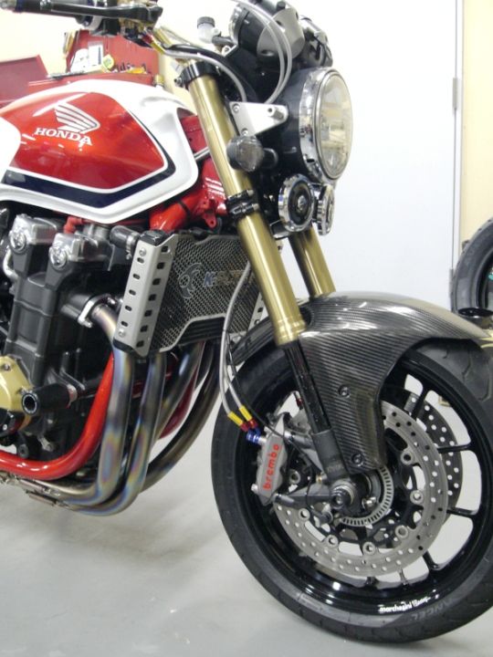 CB1300SFに倒立フォーク&ブレンボモノブロックラジアルを組みました。見た目重量感がでるかなって思ってたけど、意外と纏まって見えました。