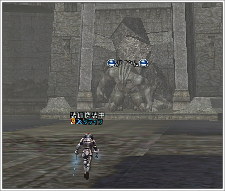起こした後、石化が解けて、その後画面が一度暗くなり、次の瞬間台座から降りた状態で目の前にバイウムが現れます。