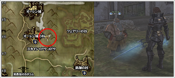 2.オーレンの街の郊外にいるマエストロ レオリンに話し掛けて「運命の囁き」クエスト開始。