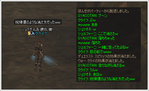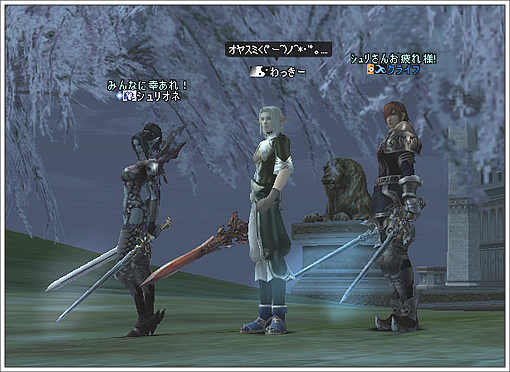 楽しく引退していけるってのは寂しくもありまた羨ましくもありますね・・・。そしてやはりMMOでは「自分の周囲に誰がいるのか」が非常に大事になるんだということをひしひしと感じました。