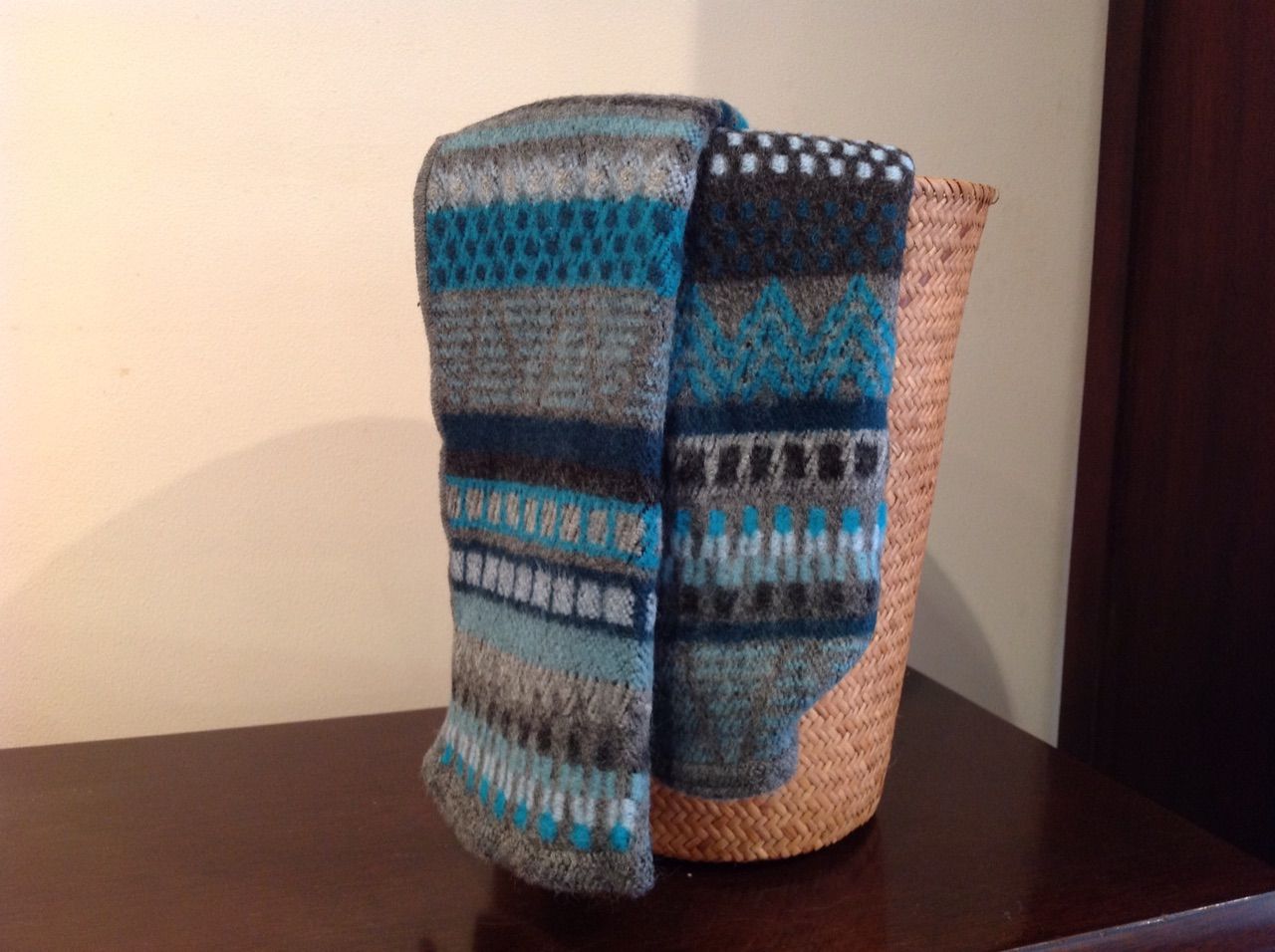 地味な色のコートだったらデザインにインパクトのあるこれらのマフラーがアクセントになるのかな。
