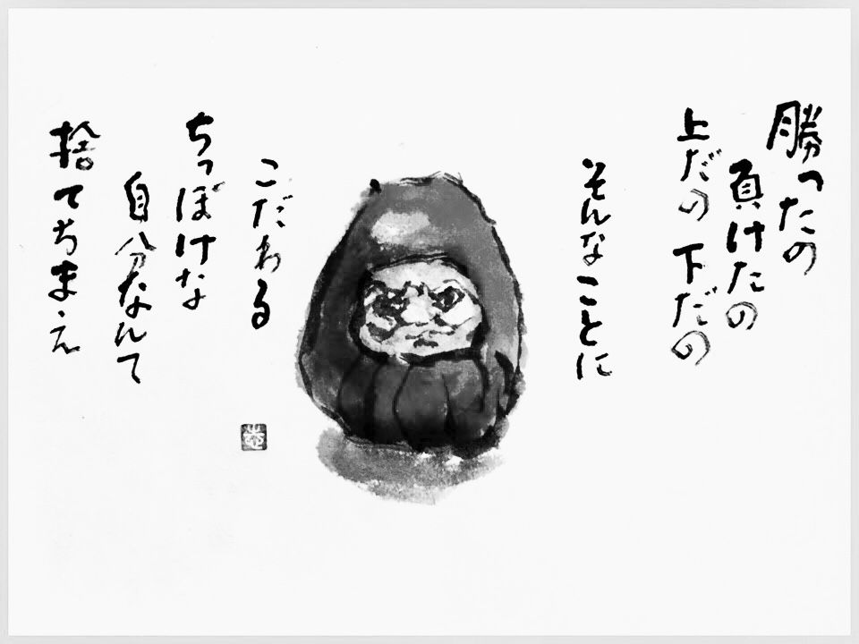 ◇◇愚行を繰り返す自分の胸に…「達磨」さんの背中が発する無言の“雷”が突き刺さる。