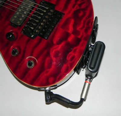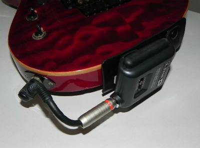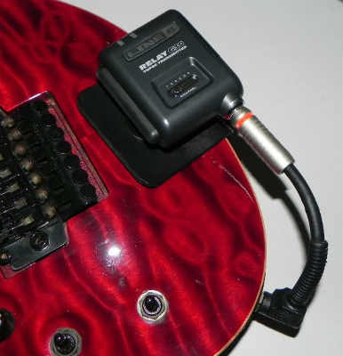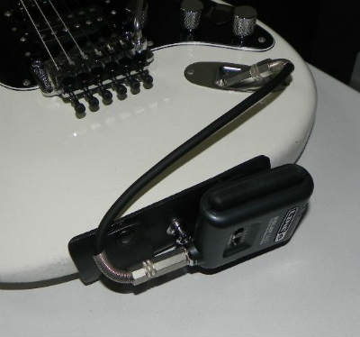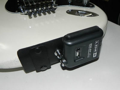 前回のものは、ギターの後部上面に位置させるものだったわけですが、正面からモロに送信機が見えてしまうことを気にされるかたもいらっしゃるかとも思いまして、引き続き、ギター後部側面に位置させるタイプを企画してみました。