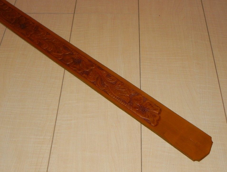 デザインとしては、「シェリダンスタイル」と呼ばれる、レザーカービングとしては最も一般的なものですが、その内容としては比較的シンプルなものではあるでしょうか。