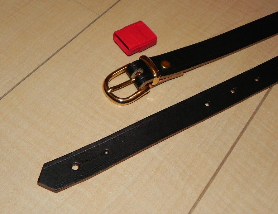 この場所はバックルピン穴のある長さ調節部の端部ですが、このことから、もしかすると、ストラップのフロントエンドとリアエンドの端部も同様な形状ではないのか?と思ったわけです。