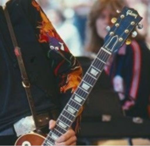 これは、照明のライトの色のせいではない感じです。(ペイジ氏のレスポールのペグの色はゴールドです・・念のため )