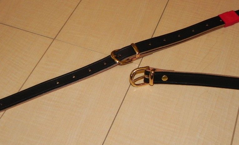 もし同じような長さのものを製作するとなると、「幅は狭いけれど、かなりの長さの革が必要」ということで、これもまた費用がかかることになってきます。(⇒状態の良い革の部分を長くとるのは、1枚の革の中で使える部分が限定されるので、けっこう頭が痛いことになります。)