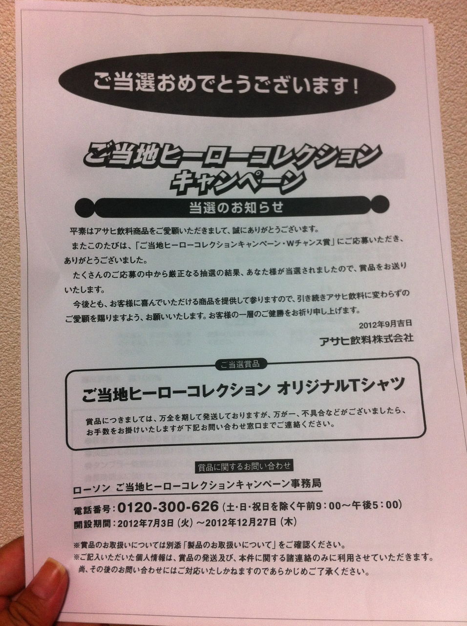 ローソンのご当地ヒーローカードコレクション第一弾の懸賞が当たったよ