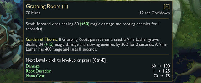 Grasping Roots (E) damage lowered from 60/105/150/195/240 to 60/100/140/180/220