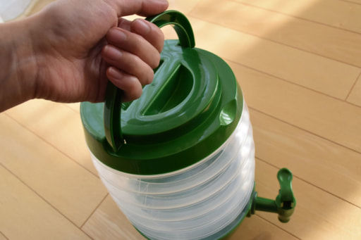 ダイソーの「折りたたみポリタンク」で冷蔵庫の中にウォーターサーバー、を実現