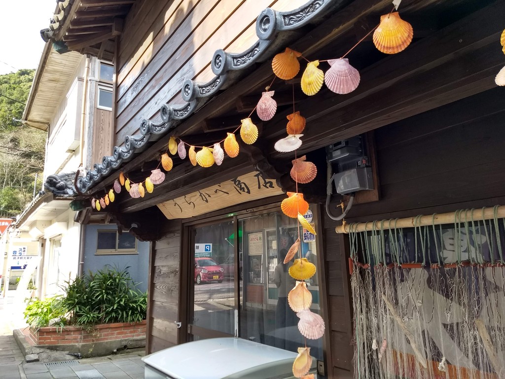 崎津は穏やかな湾に面した小さな集落で、気のせいか普通より軒の低い家々が並び、手作りのみりん干しや郷土菓子などの手書き看板が素朴で懐かしい空気がゆったりと流れています。