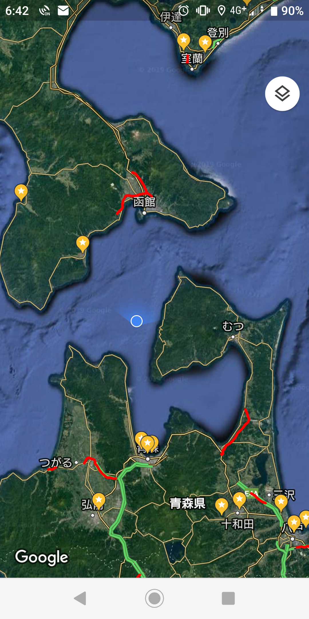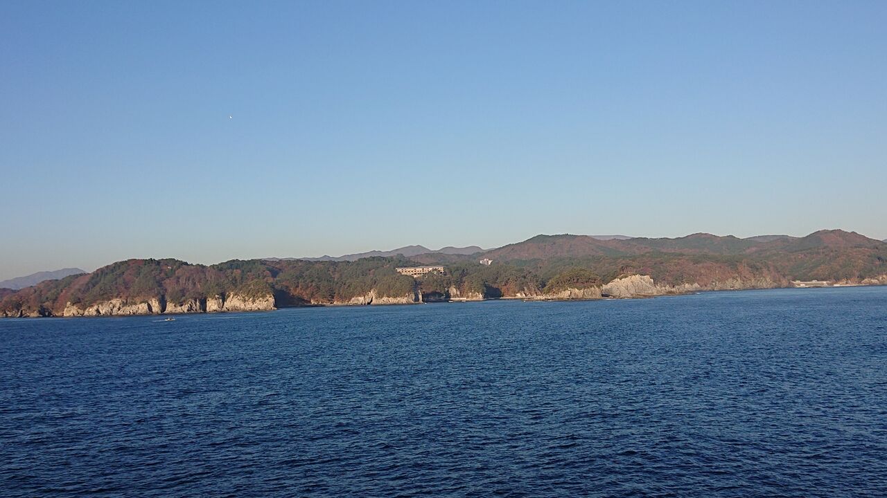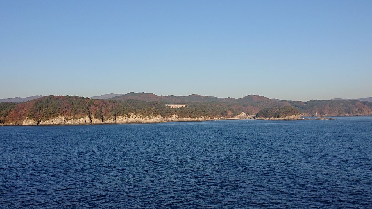明るくなって外を見てみると下北半島沖合いを航行中。