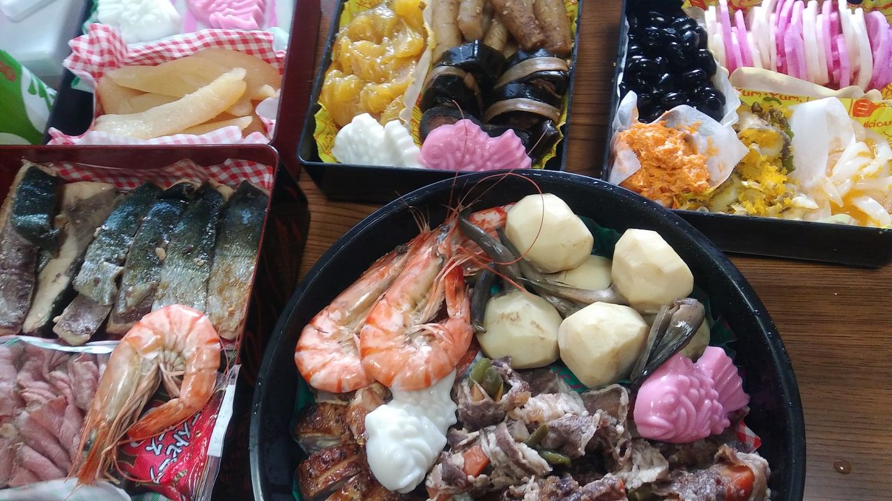 写真は所長が作ったおせちと所長の愛犬たちです(^-^)