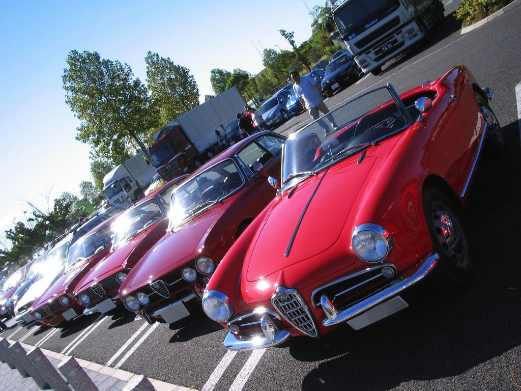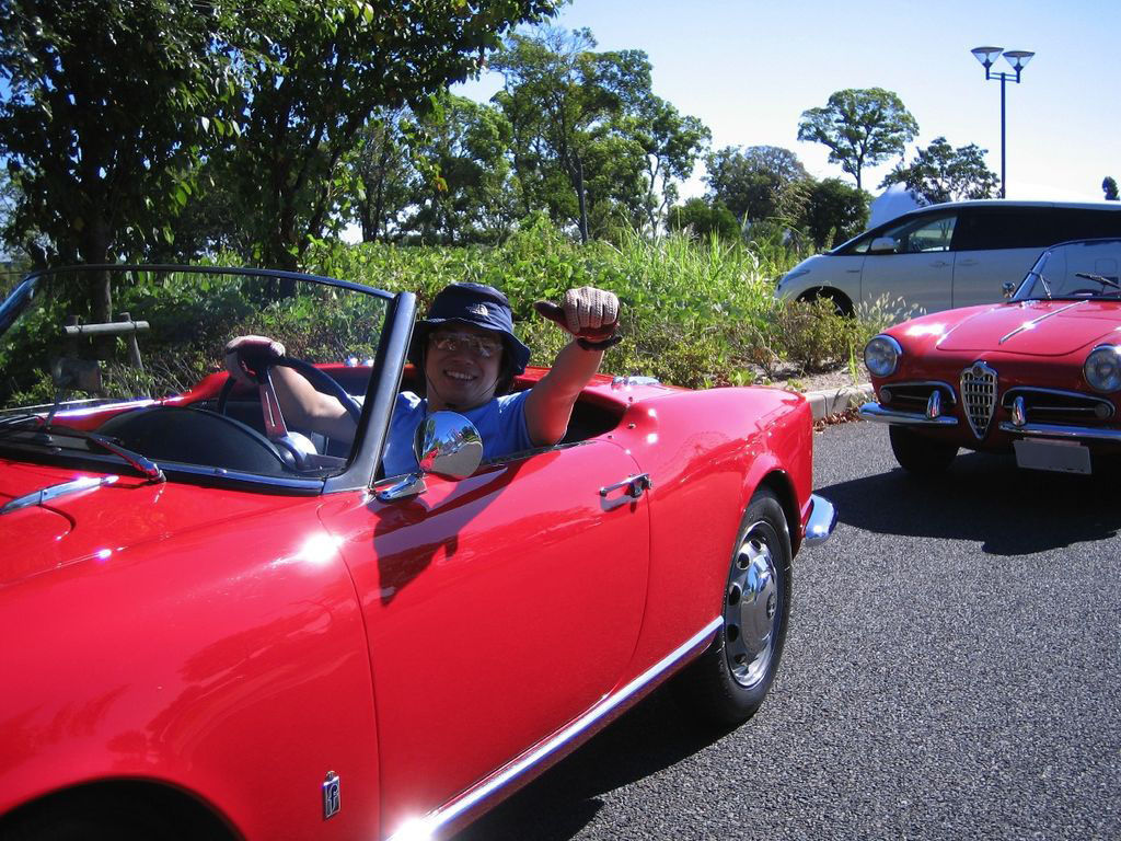 ヒストリックアルファが早速集まっていました。せっかくの機会だったのでジュリエッタ乗りの友達のM君を誘っていきました。ちなみにM君24歳にして、ジュリエッタ乗りなのです。