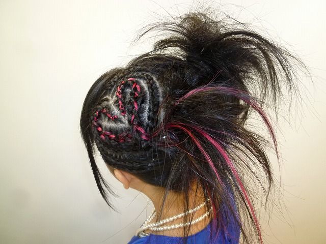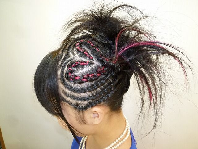 久しぶりにハートのコーンロウをエクステ入りで施しました!