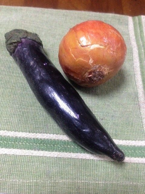 粘土細工で作った茄子と玉ねぎでした。