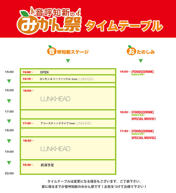 7/9(土)音呼知新のみかん祭ワンマンのタイムテーブルが公開になりました。