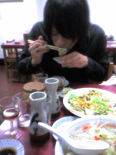 もうすぐDVDが発売になる事を記念した訳ではないのですが、大陸に行ってきました。大陸とはカナリアボックスのPV撮影で使わせてもらった中華料理屋さんです。やっているかどうか不安でしたがバリバリやっておりました。昼に行ったのですが、草野球帰りなのかユニフォーム姿の初老の男性達や、若めの母子や、料理のお皿の上に突っ伏して眠ってしまっているおっさんなんかがいました。途中若いギター背負った男の子達も入ってきました。昼まっからビール飲んで紹興酒飲んでたらふく食べて一人1500円足らず。安すぎるな〜。青山とか代官山とかのカフェでサンドイッチとかキッシュとか食べたりした日にはすぐこんくらいの値段いっちゃうもんなあ。偏見だけど。青山とか代官山のカフェでサンドイッチとかキッシュとか食べたこと無いけど。肉だんごがほんとおいしいんです。もちもちしてうまいんです。餃子もヘルシー&ジューシーでおいしいです。そしてタンメンもおいしいです。写真は一緒に行ったカメラマンの西原君。若いくせに売れっ子です。lunkhead_nikki at 01:07