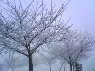 神社の周りにある桜の木の下まで行ってしまいました。30mくらい先かなぁ。