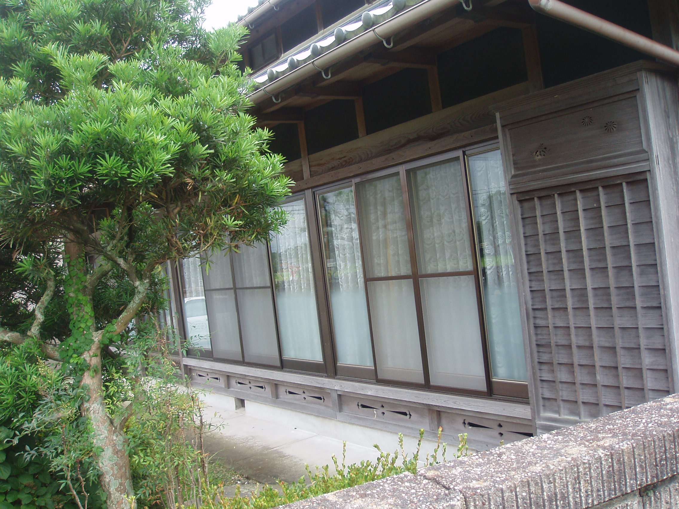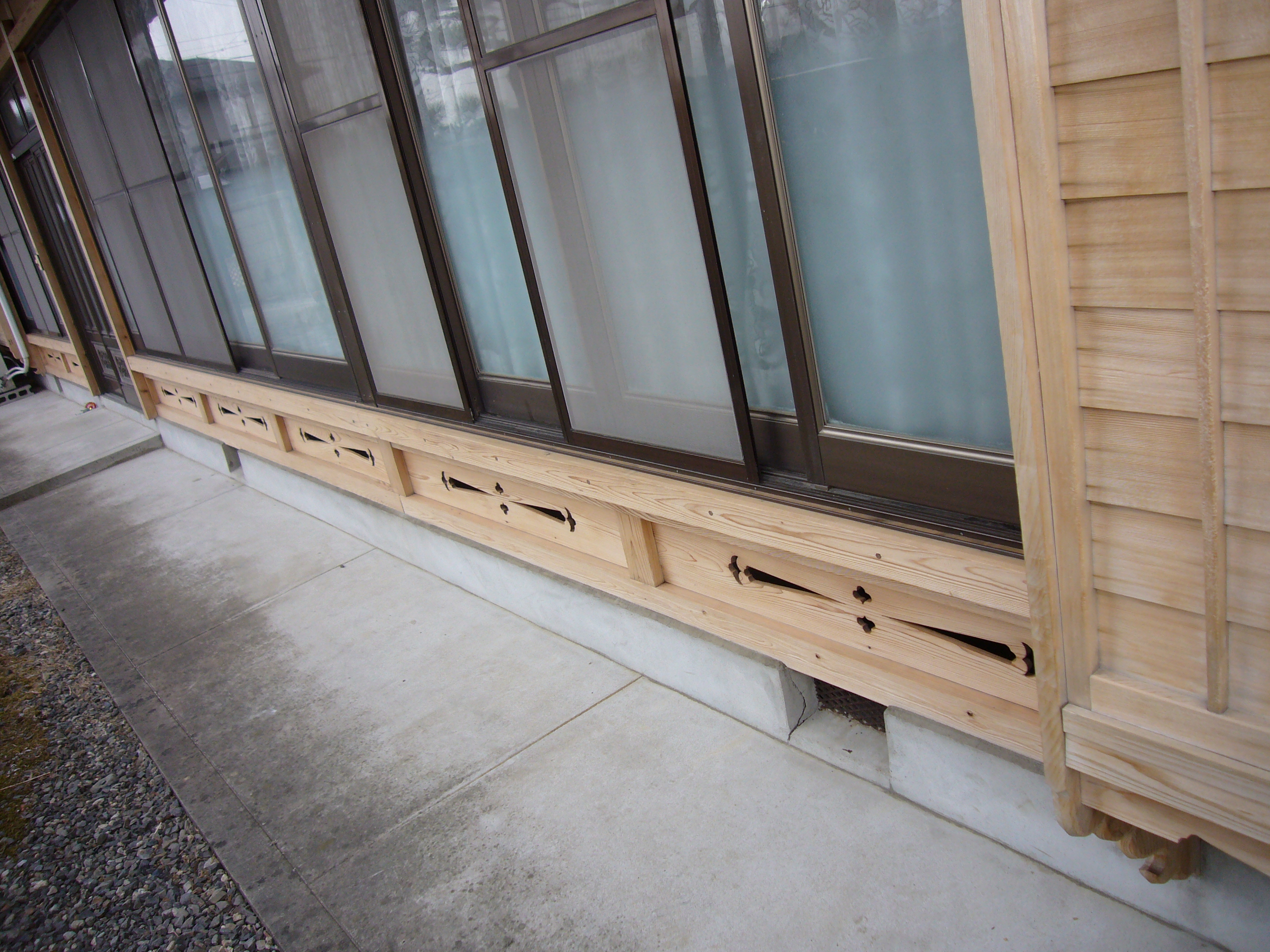 年末から築25年の田舎建ての住宅で外装改修をさせていただきました。外装の改修というと、いま張ってある外装材をはがして張替えとか、木部にペンキを塗るという工事が多いのですが、今回は施主様のご要望もあり、木部の洗いをさせていただきました。