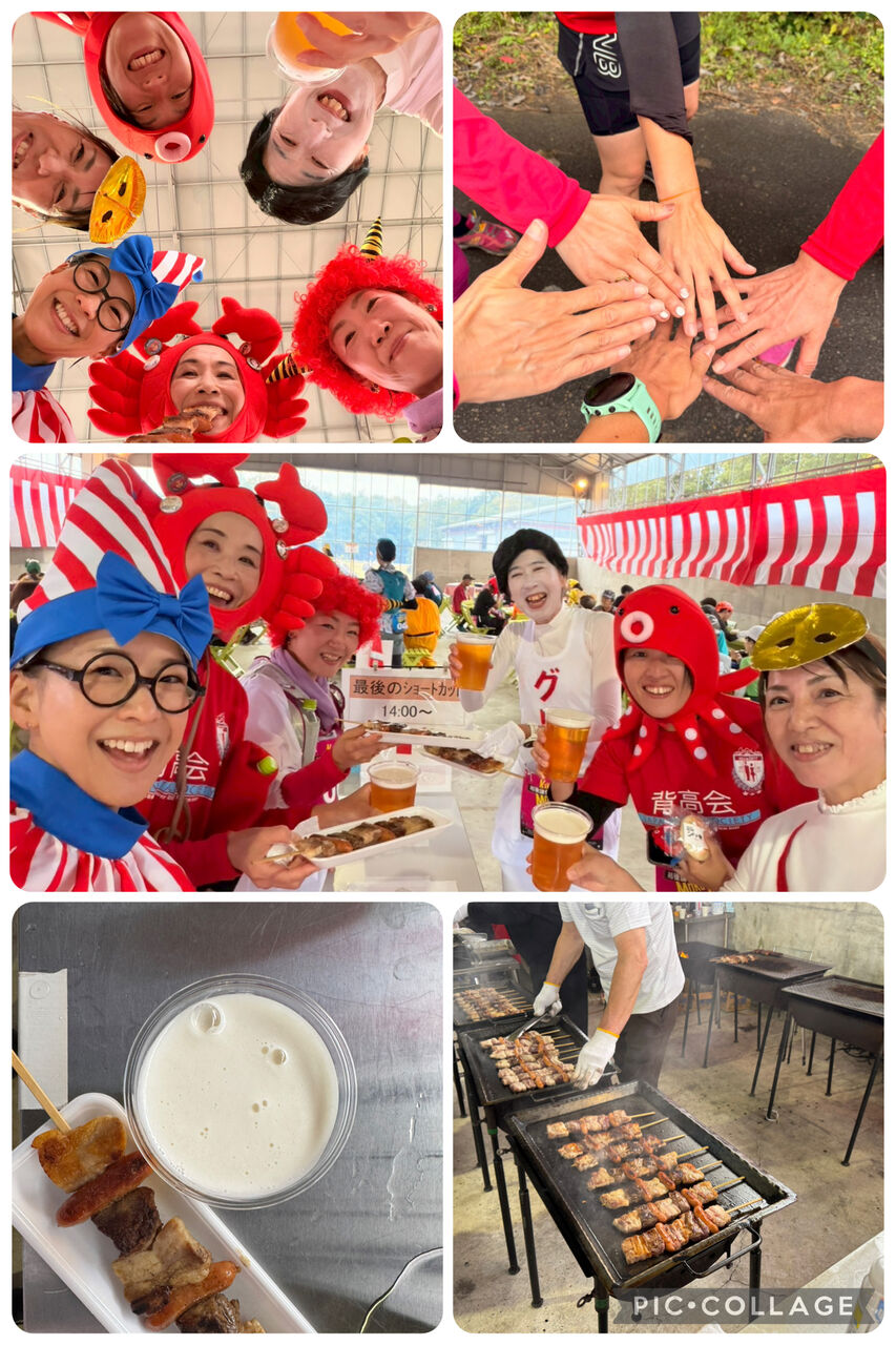 BBQ会場でお肉とビールで乾杯。ここがゴールではなく、あと2キロ走らねばなりません。結局、制限時間をオーバーし正式なゴールは出来ませんでした😅