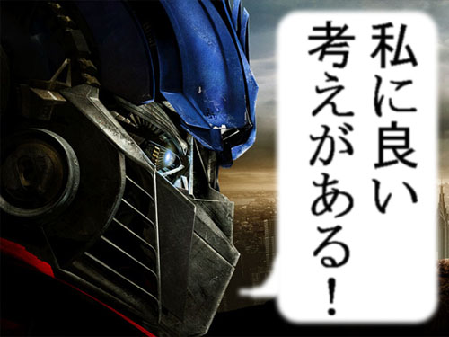 この前、秋葉原に行ったらこんな感じのPOPを発見して爆笑した私だ。こんばんは。さて、あと数週間でトラフォ者にとって20周年に一度の祭、実写映画版トランスフォーマーが公開されるわけだが、幸運なことに試写会のチケットが手に入った。いやー、ネットやらテレビやらで試写会の案内を目にする度に年賀葉書の余りを送った甲斐があったよ。