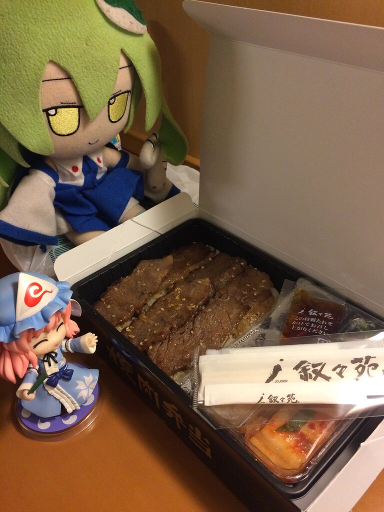 先ほど大丸デパートで仕入れた叙々苑カルビ弁当で御夕飯。