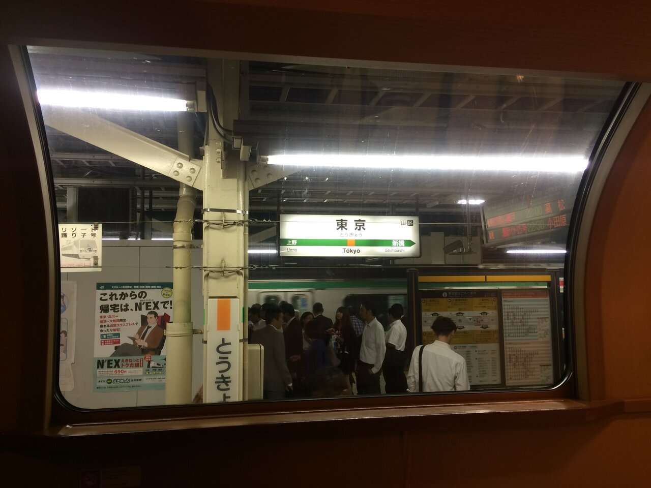 帰宅ラッシュ勢を眺めつつ、サンライズ瀬戸・出雲号東京駅発車。