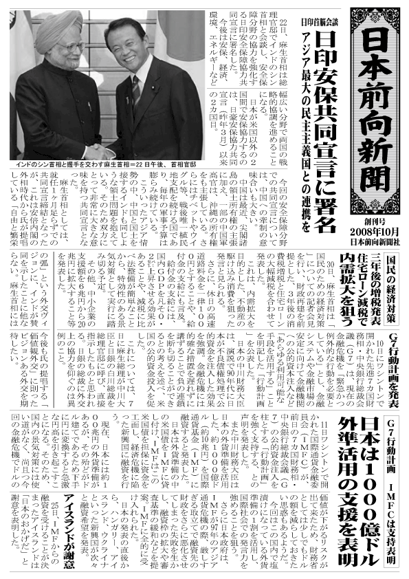 日本前向新聞 2008年10月 創刊号