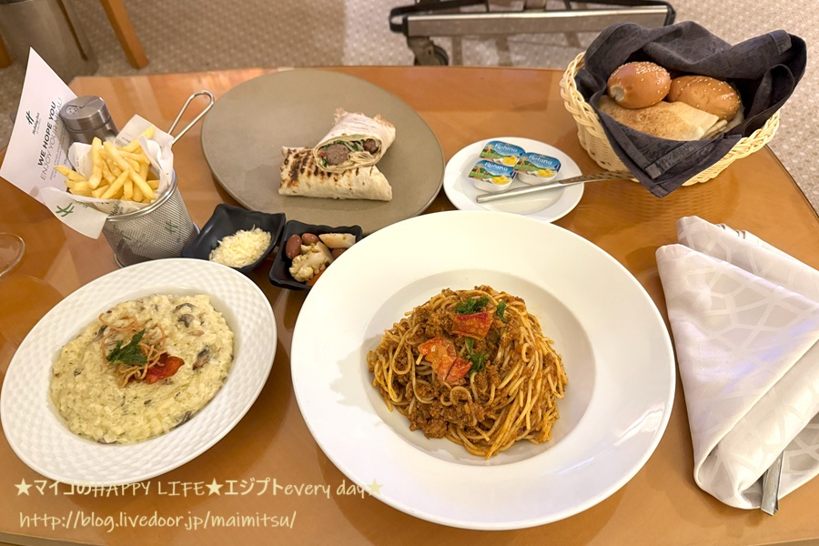 エジプト旅行記の続きです。22時頃にホテルの部屋に戻ってきたのですが、まだ夕食を食べていなかったので、ルームサービスを頼むことにしました。エジプトラストナイトだったけどスケジュール的に仕方がないですね