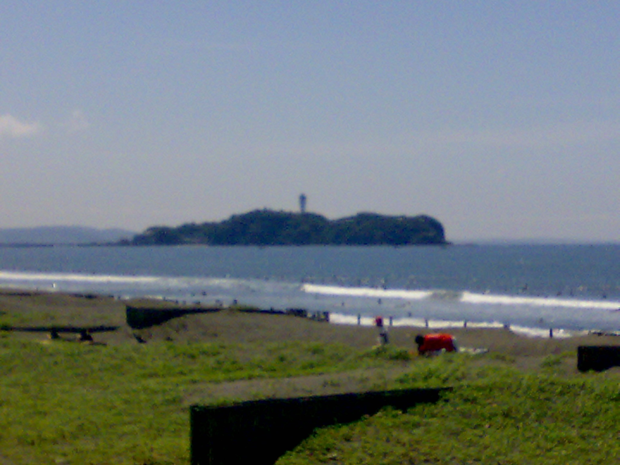 月例湘南マラソン(だったかな?)でゼッケンつけて走っている人たちもいて、サーファーもたくさんいて。町内会の観光地引網やってたり。のーんびり。