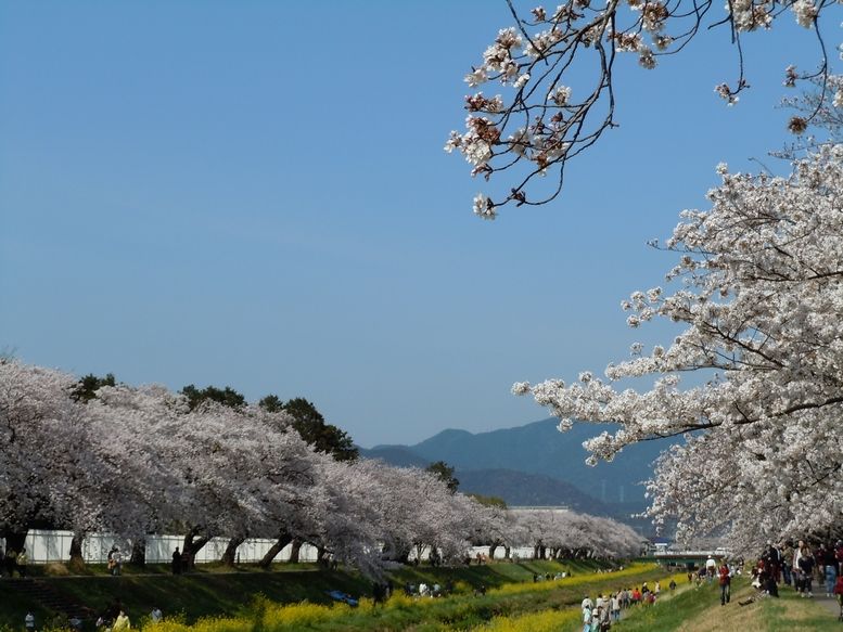 お花見がてらに歩く人、飲む人、バーベキューする人・・様々
