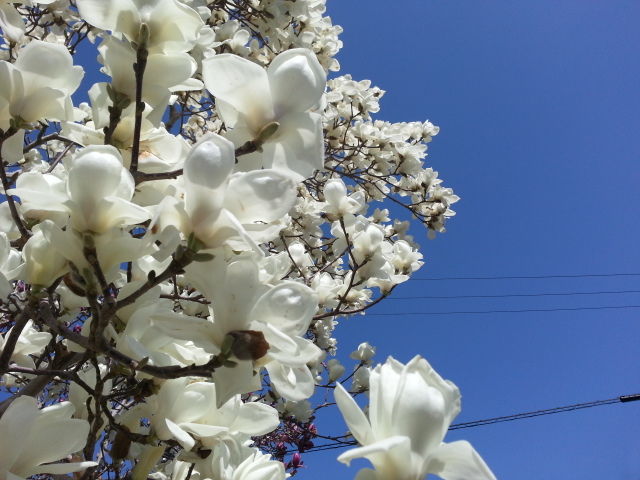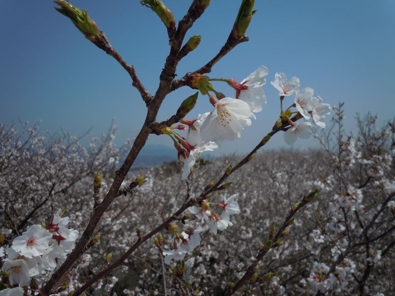 この陽気でようやく咲きはじめたようです あと2週間もすれば満開