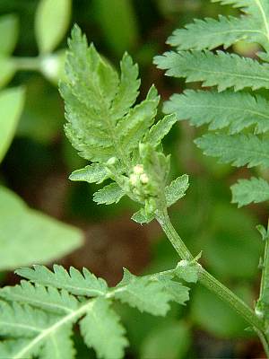 キク科のハーブなんだけど、これは虫除け目的でブルーベリーの鉢の間に置いている。