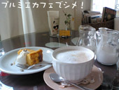 無事おやつの時間です。カフェオレと南瓜チーズケーキさ。旨すぎぃ〜!カシャ。あ、「食事少な目キャンペーン」は・・・・・