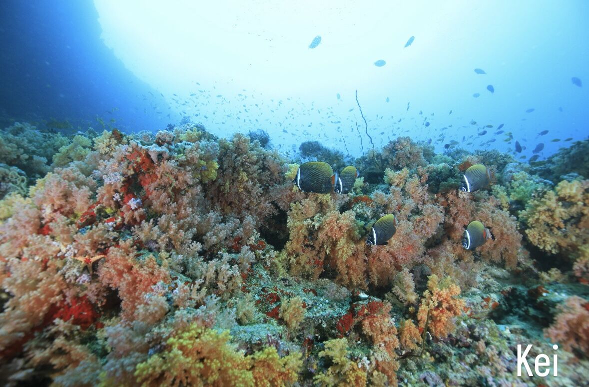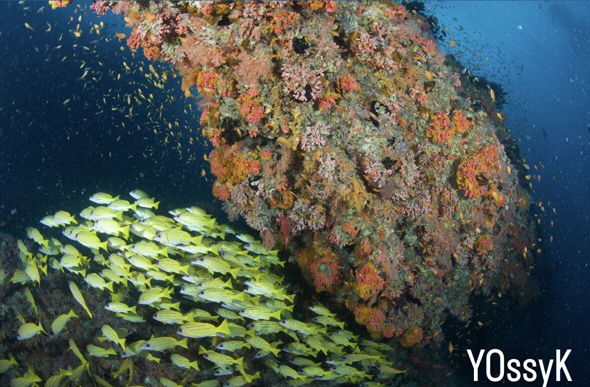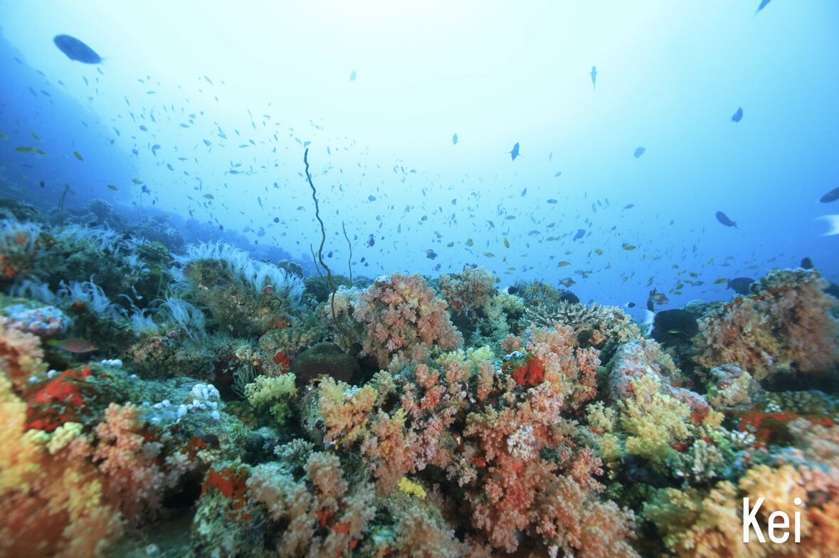 続いて2本目は、ソフトコーラルポイントです。ここのポイントはソフトコーラルが非常にキレイな中、魚影も濃いのでどちらも楽しめるポイントになってます。