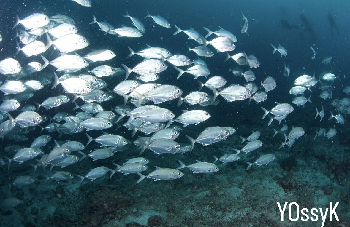 ハナダイ達やギビナゴ達がキレイに舞いながら