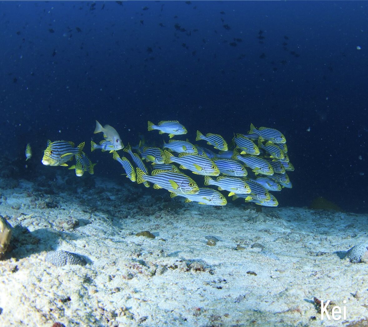 よくみるとナンヨウカイワリとの混泳の群れでした!