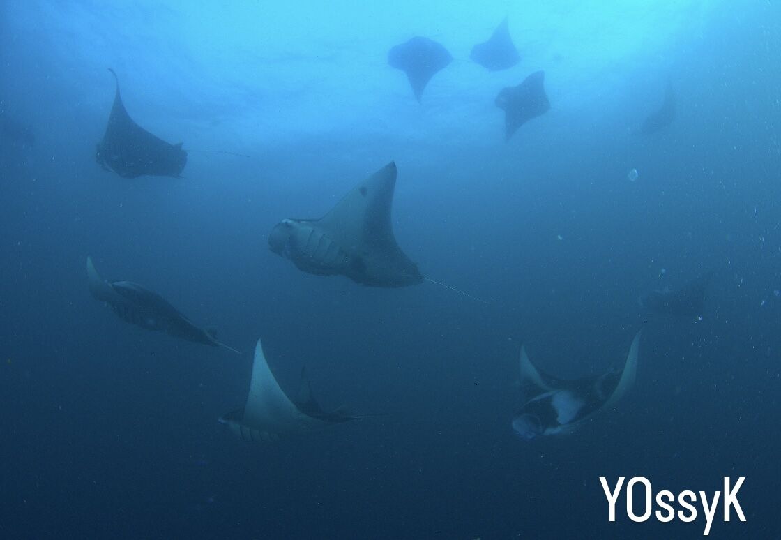 小さなクリーニングステーションに最大7枚から8枚のマンタが!