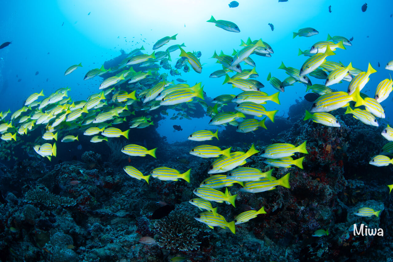 沈船では、小魚たちがびっしり〜